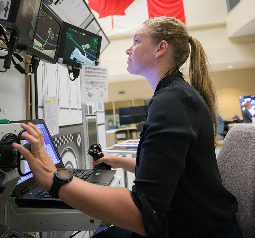 CSA astronaut Jenni Gibbons undergoes robotics training at the CSA. (Credit: CSA)