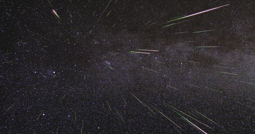 An outburst of shooting stars during the 2009 Perseid meteor shower. (Credit : NASA/JPL)