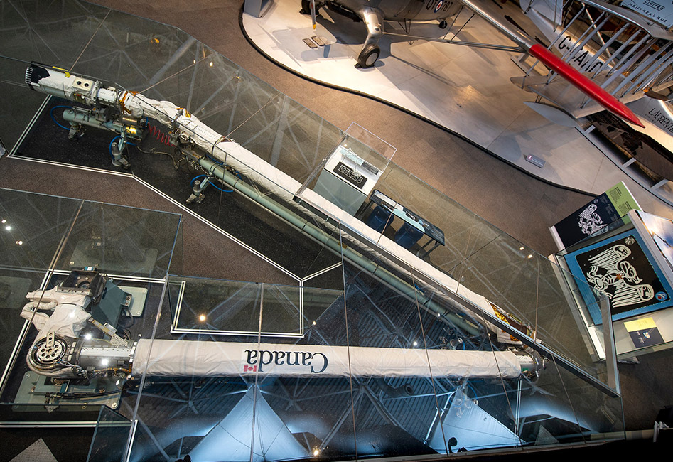 Picture caption: The first Canadarm on display at the Canada Aviation and Space Museum. (Credit: CASM)