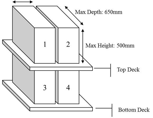 Maximum width: 550 mm for payload A; 250 mm for payload B