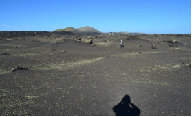 Figure 4: Valle de Tranquilidad South. The site is situated off the SW border of the Timanfaya National Park, off of the LZ-67 road (28°58'44.36"N / 13°44'56.52"W). A camel road cuts through the site. This site is characterized by flat and hummocky terrain with low vegetation cover. (Credit: Western University)