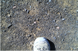 - Red-oxidized regolith found close to the camel dirt road (Image B).