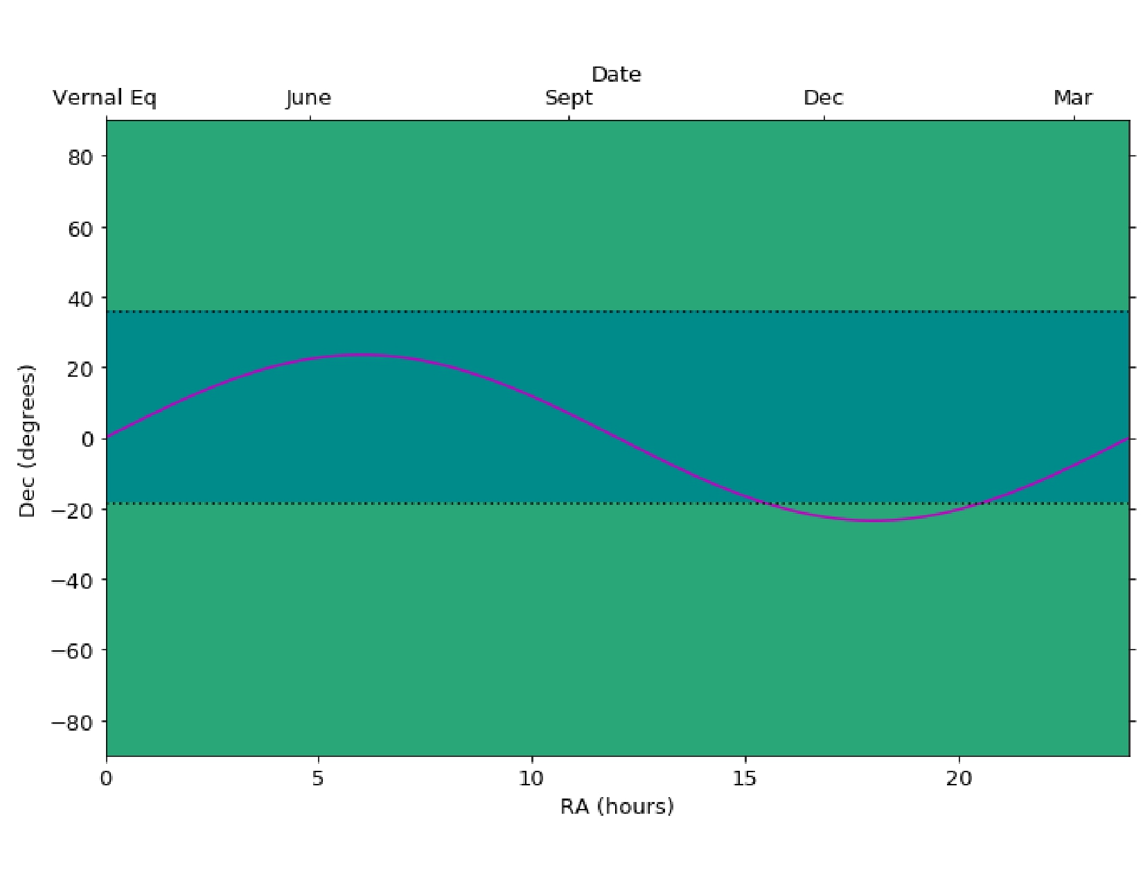 NEOSSat's polar Sun-synchronous orbit over the terminator of the Earth results in a nominal Continuous Viewing Zone (CVZ). The CVZ is illustrated in Figure 3. The telescope can point to a target in the CVZ from any point in the orbit. There are some restrictions on the spacecraft pointing, including roll angle, due to operational constraints and spacecraft thermal constraints, which place some additional limits on CVZ access or continuity.