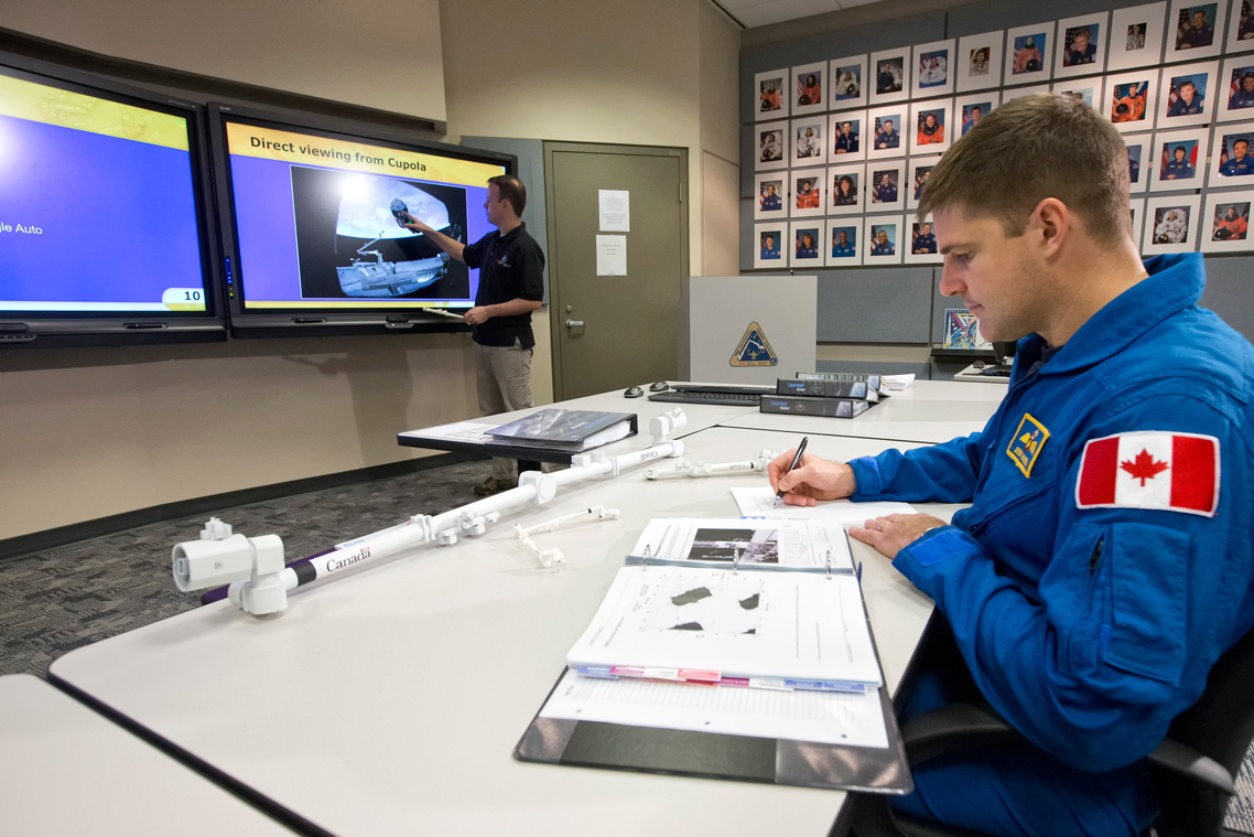 - astronauts, who may be required to control Canadarm2 from on board the International Space Station (ISS) during their mission