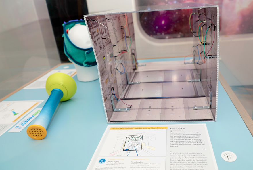 The Canadian Space Agency (CSA) collaborated with the Natural Sciences and Engineering Research Council (NSERC) to challenge children across the country to come up with ingenious ideas that could be developed into inventions to make life in space easier and more fun. The best inventions were turned into prototypes by expert makers and artisans from Canada and the United Kingdom.