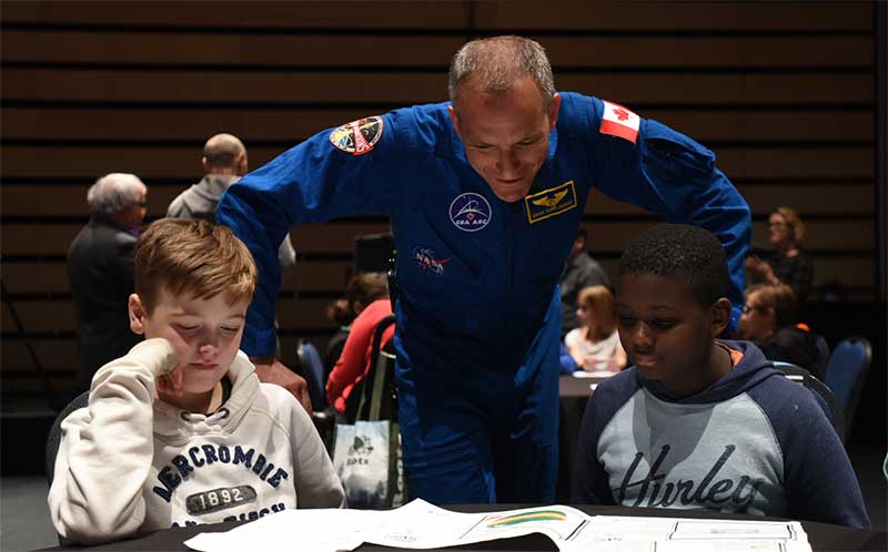 David Saint-Jacques encourages elementary school students to take part in Little Inventors – Inventions for Space (Credit: CSA)