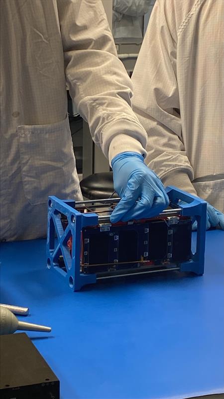 2022-12-15 - The Yukon University team prepare their YukonSat for integration in a clean room at the Canadian Space Agency.