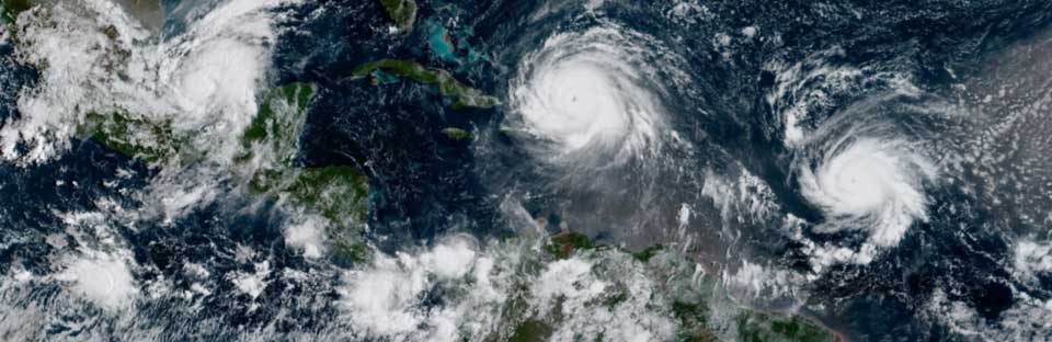 Satellite image of Hurricanes Irma, Jose, and Katia in the Atlantic Ocean in . (Credit: National Oceanic and Atmospheric Administration (NOAA)/Reuters)
