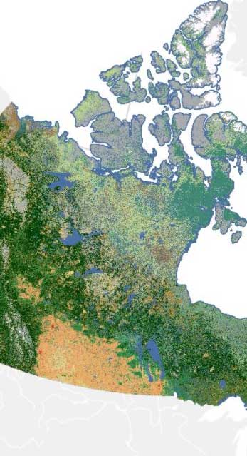 A machine learning-derived map of Canada's different types of land cover. (Credit: Transport Canada)