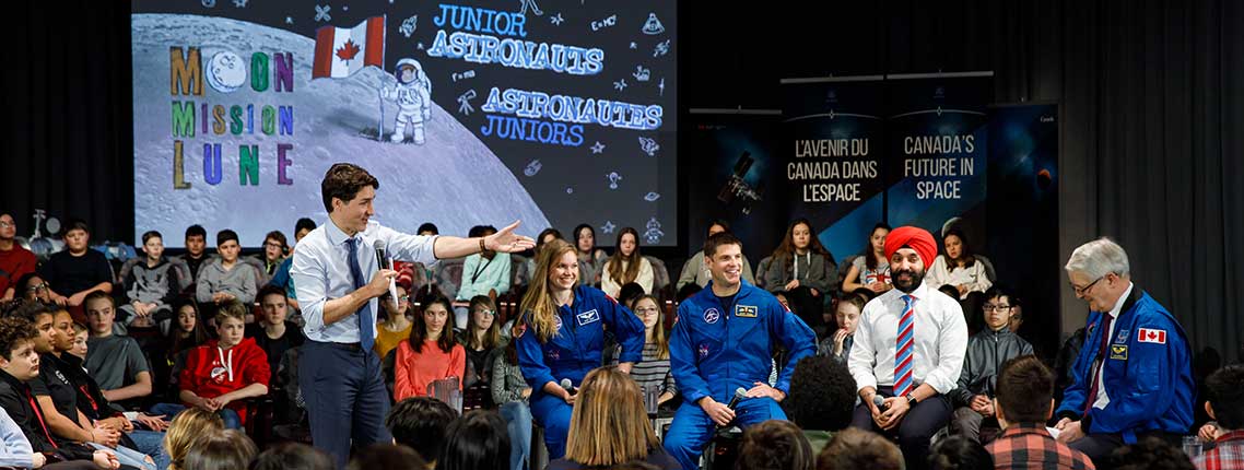- Launch a national contest to recruit Canada's "junior astronauts": The Junior Astronauts initiative will reach young Canadians right across the country and help make the exciting opportunities of a career in space and STEM a reality through a diverse array of content and activities. The initiative will teach youth what it will take to be an astronaut through activities focused on scientific understanding, physical fitness, teamwork and communication. Top participants from across Canada will be invited to the CSA's headquarters in St. Hubert, Quebec, to train with real astronauts and learn about the scientific, physical and leadership qualities they will need to develop for a future mission to the Moon.