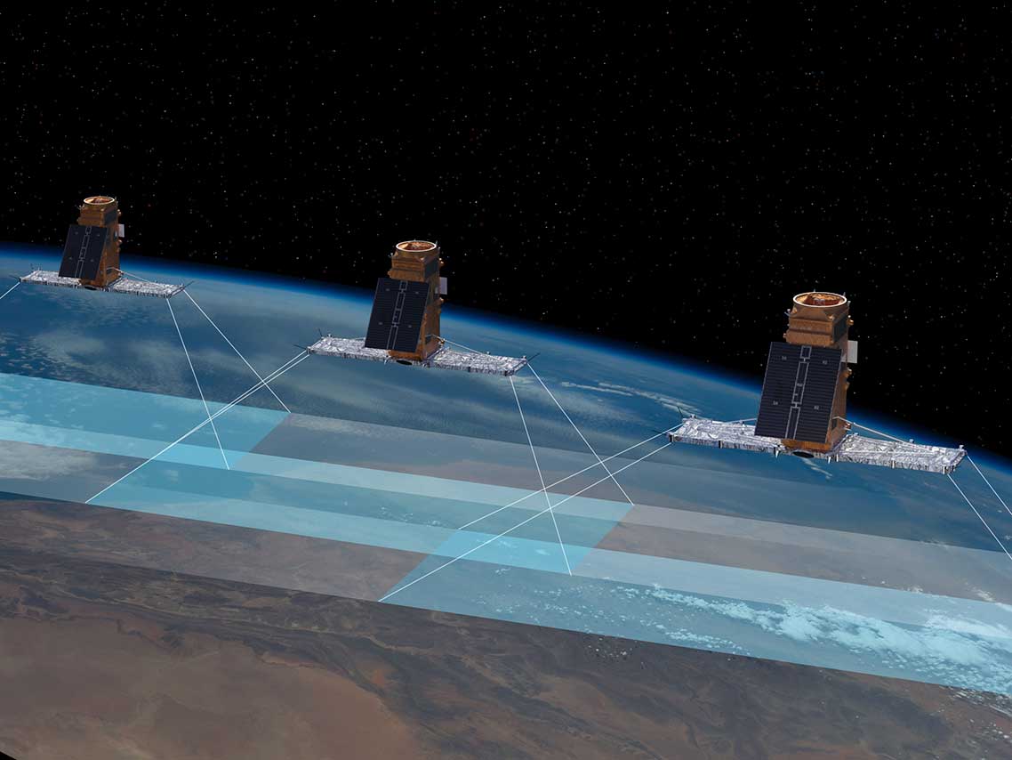 The RADARSAT Constellation is the evolution of the RADARSAT Program. It was developed through Government investments in Canada's world-leading capabilities in space-based Synthetic Aperture Radar. The three-satellite configuration will provide daily revisits of Canada's vast territory and maritime approaches, as well as daily access to 90 per cent of the world's surface. The RCM is designed to provide the data necessary to support government operations for three main applications: maritime surveillance, disaster management and ecosystem monitoring.