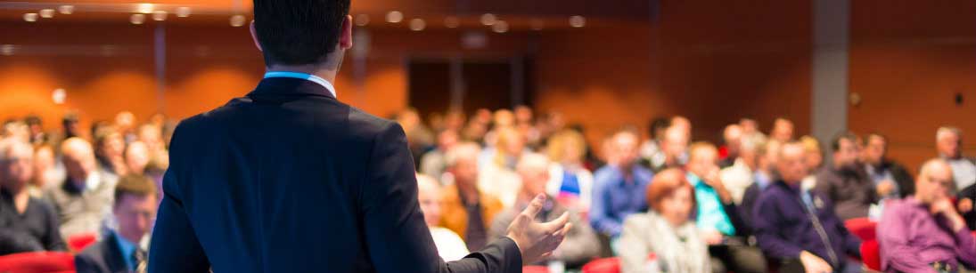 In large rooms, people at the back may have trouble hearing you if your voice doesn't carry well. Speak loud enough to be heard by all, without straining your voice.