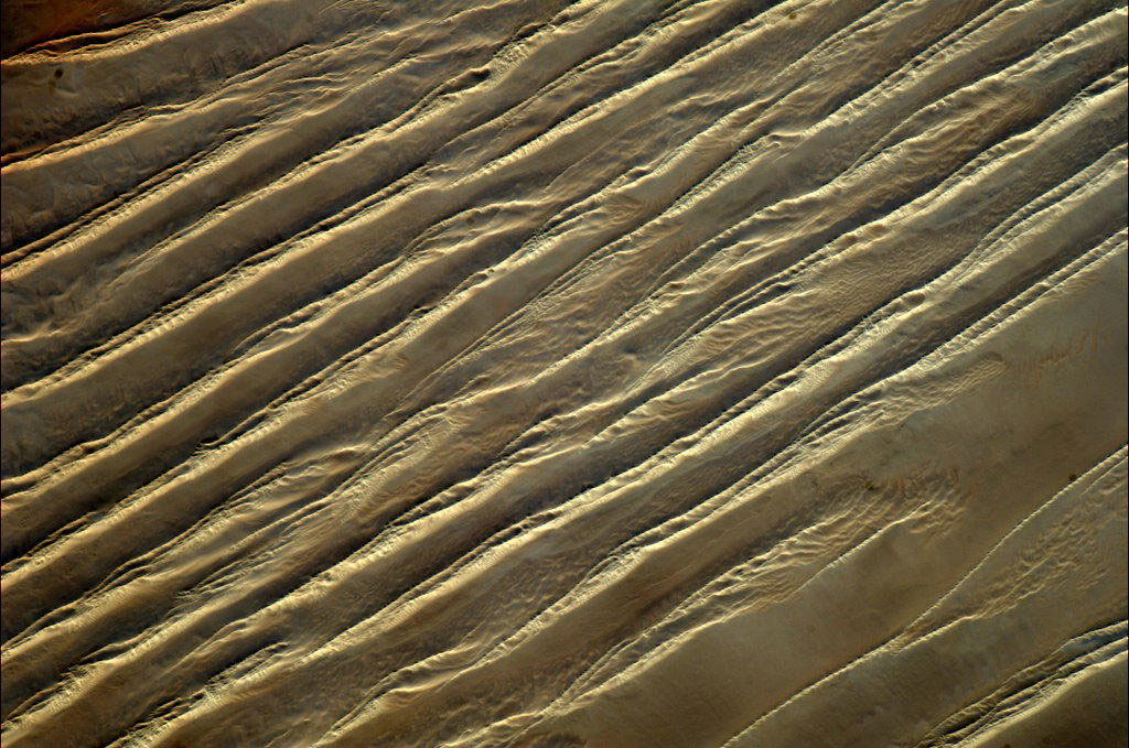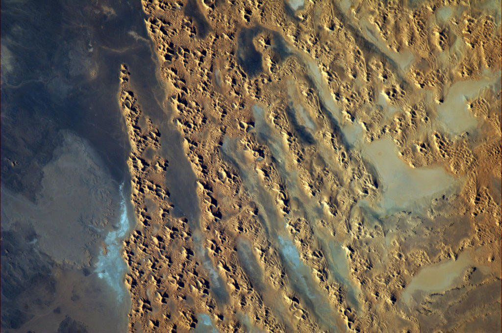 The Libyan Desert, a 700,000 km2 territory in the north west of the Sahara, as photographed by David Saint-Jacques aboard the International Space Station. (Credit: Canadian Space Agency/NASA)