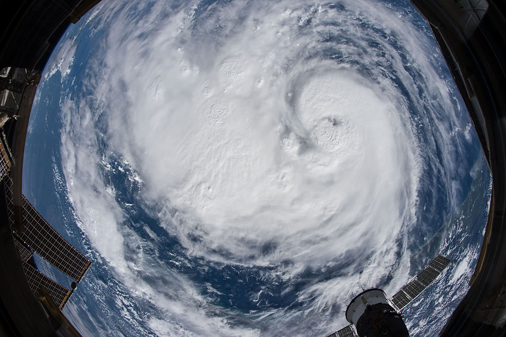 Hurricane Florence seen from the International Space Station with Canadarm2 in the foreground. (Credit: NASA)