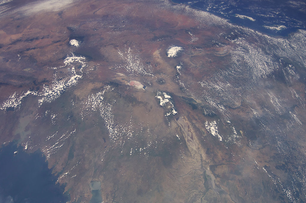 At the bottom, just to the left of the centre of this photo, is Lake Natron in Tanzania. (Credit: NASA)