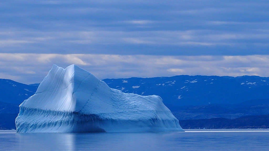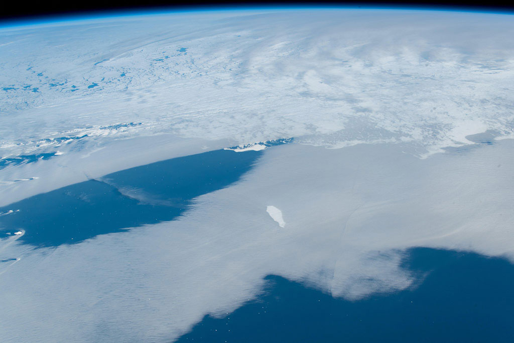 The small white dots are large icebergs captured by David Saint-Jacques from the International Space Station. (Credit: Canadian Space Agency/NASA)