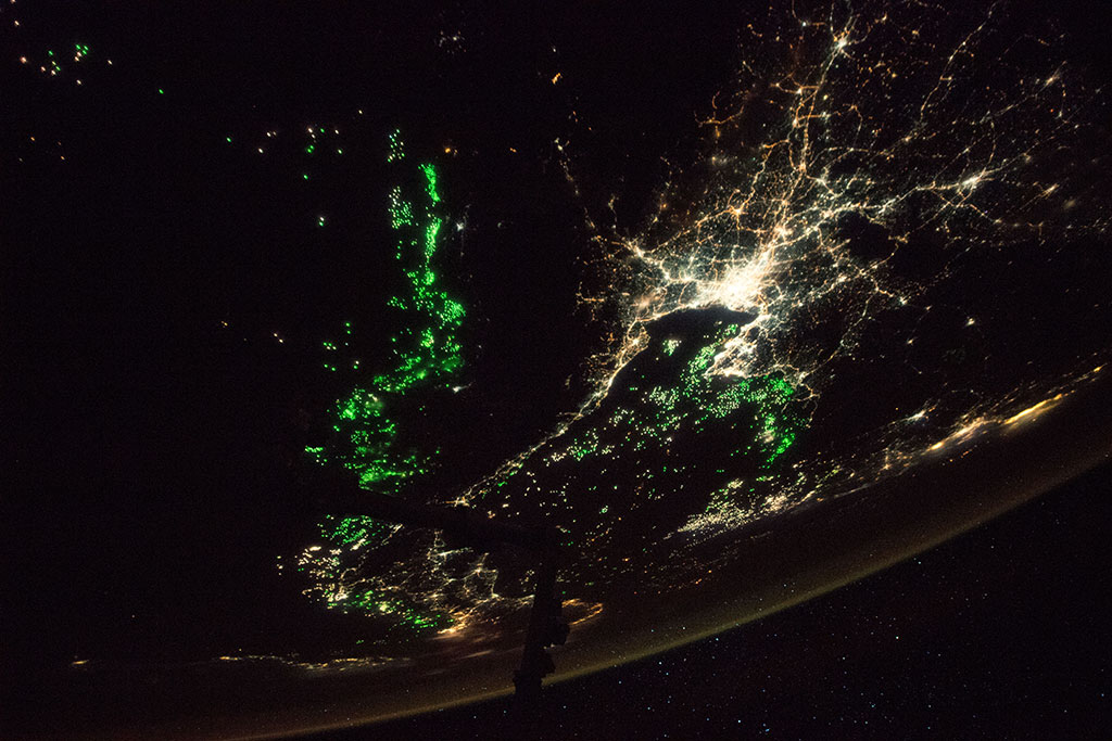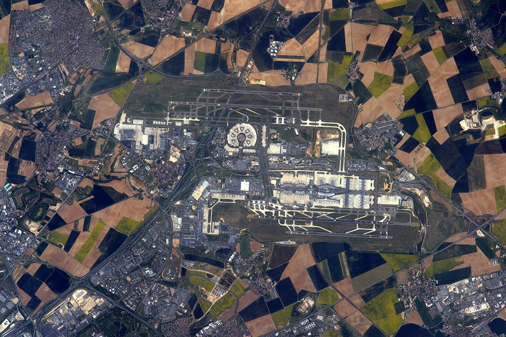 A web of roads and highways is clearly visible in this nighttime photo of Paris taken by French astronaut Thomas Pesquet from aboard the International Space Station. (Credit: European Space Agency)