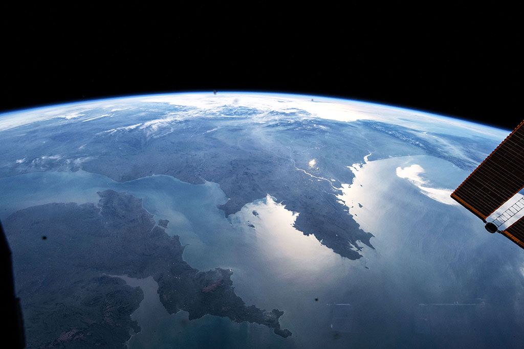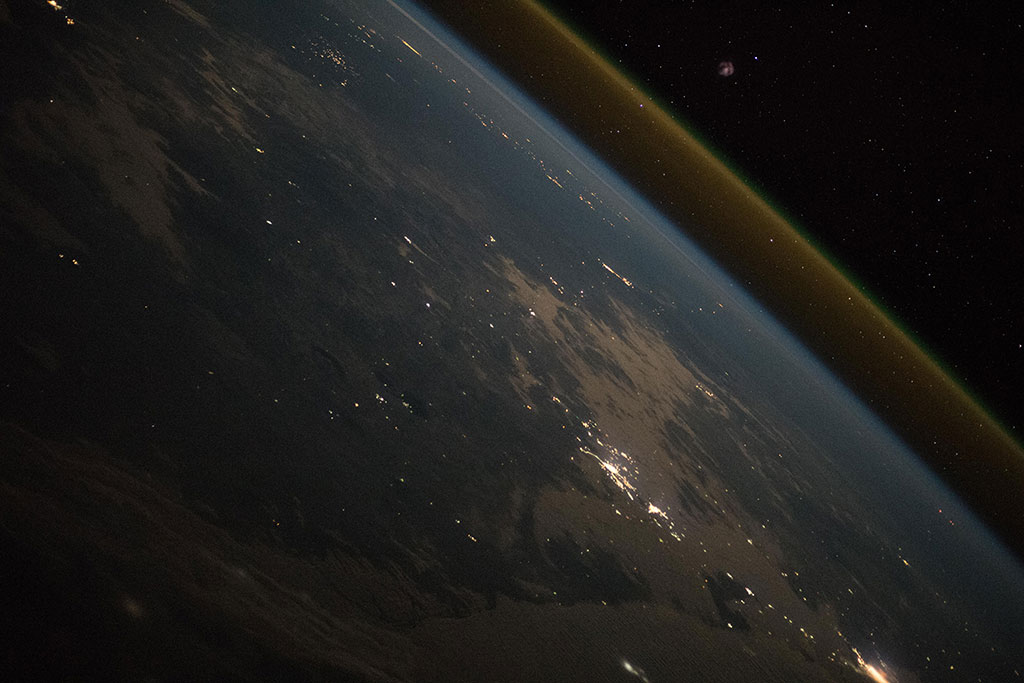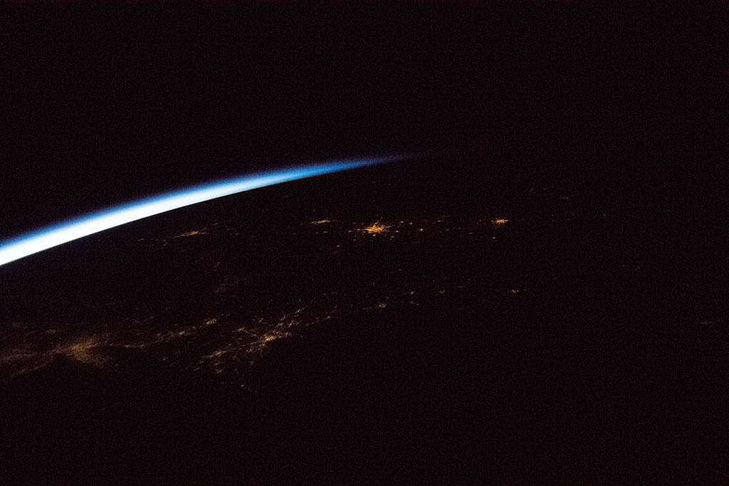 The thin blue band in this photo taken by David Saint-Jacques from the International Space Station is our planet's atmosphere. (Credit: Canadian Space Agency/NASA)