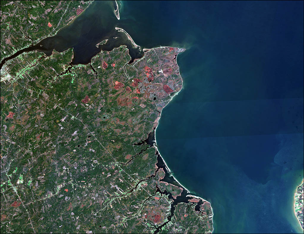 The 8-kilometre long Cavendish beach, in Prince Edward Island, can be seen with the cameras aboard the International Space Station. This photo was captured by Chris Hadfield. (Credit: Canadian Space Agency/Chris Hadfield)