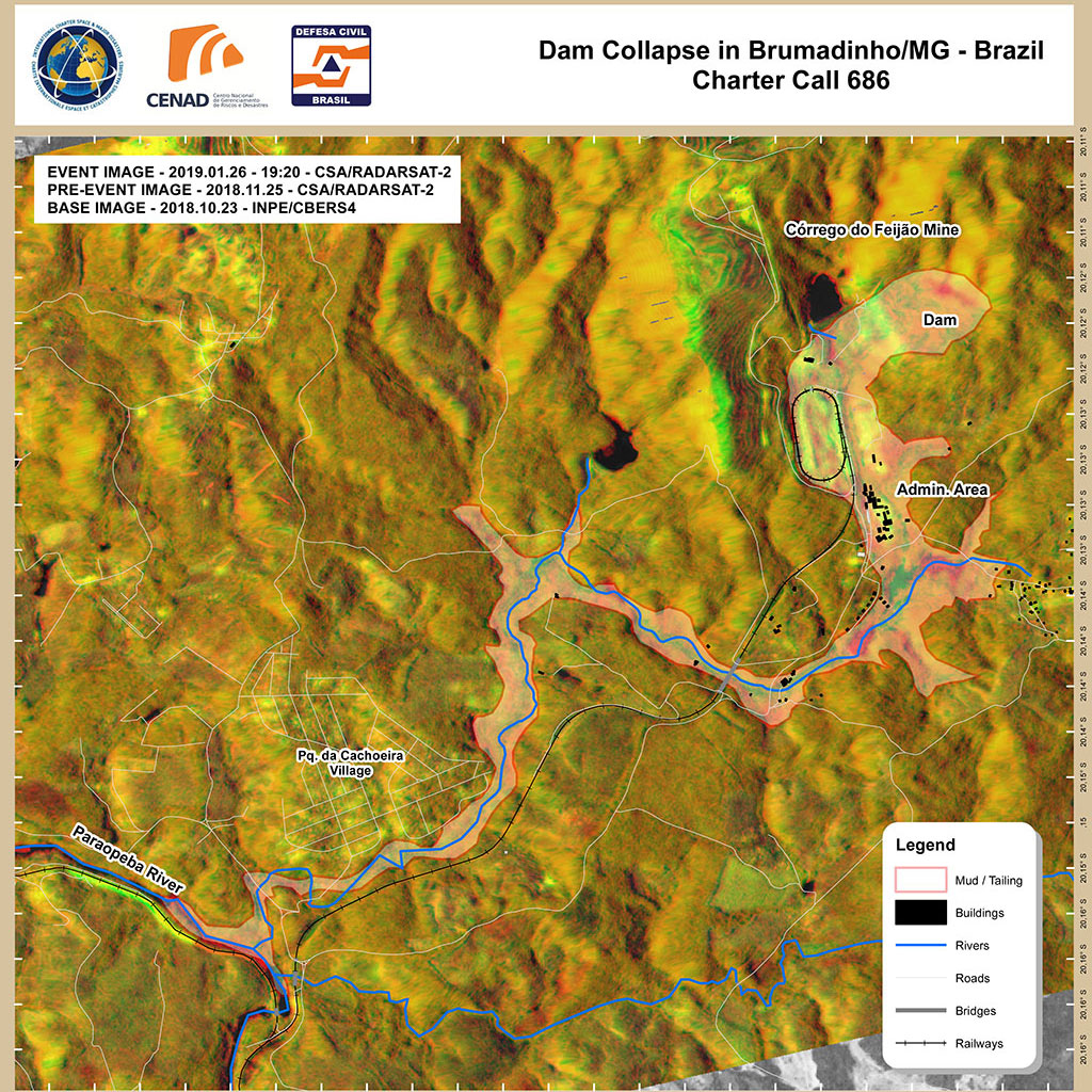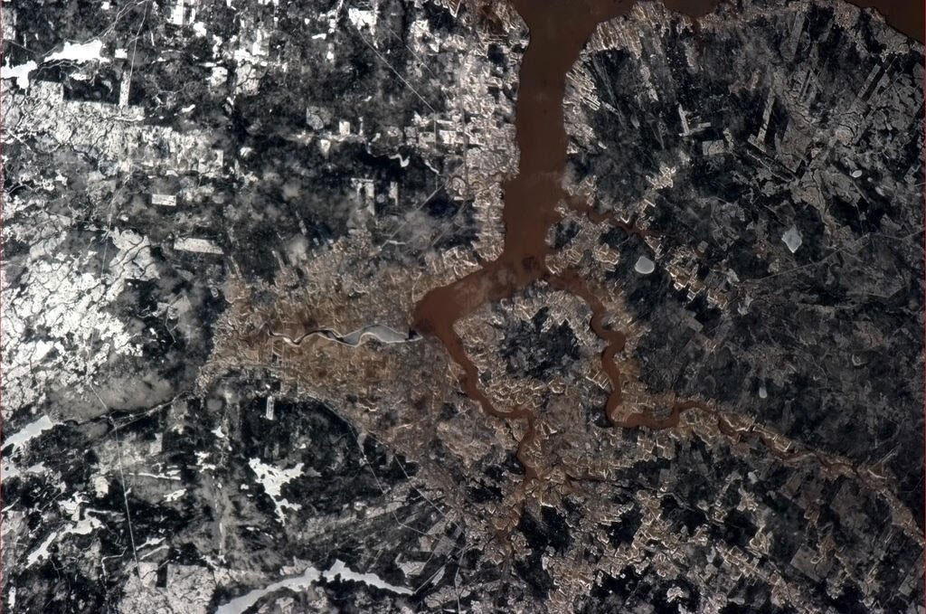 On January 25 2019, a tailings dam collapsed at an iron ore mining site in the town of Brumadinho in southeastern Brazil. This photo of the area was taken by an astronaut aboard the International Space Station on February 2, 2019. The landslide is visible in the bottom right corner. (Credit: NASA)