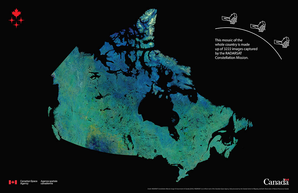 There are 14 national parks in the Canadian Arctic. Sirmilik National Park (red dot), in northern Baffin Island, Nunavut, is filled with leftovers from past glacial activity. This mosaic of the Arctic is made of images captured by Canada's RADARSAT-2 satellite between March 30 and April 2, 2018. (Credit: Canadian Ice Service)