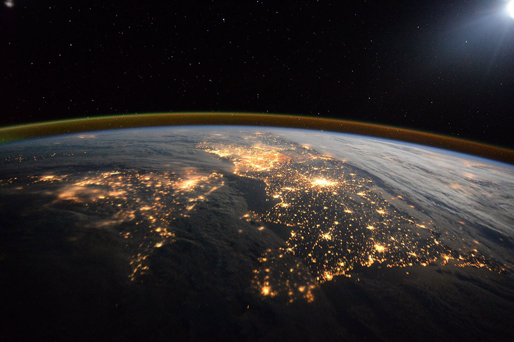 "Egypt is the gift of the Nile." – Herodotus. The Nile River and its delta, striking green ribbon of life in the desert, as photographed by David Saint-Jacques aboard the International Space Station. (Credit: Canadian Space Agency/NASA)