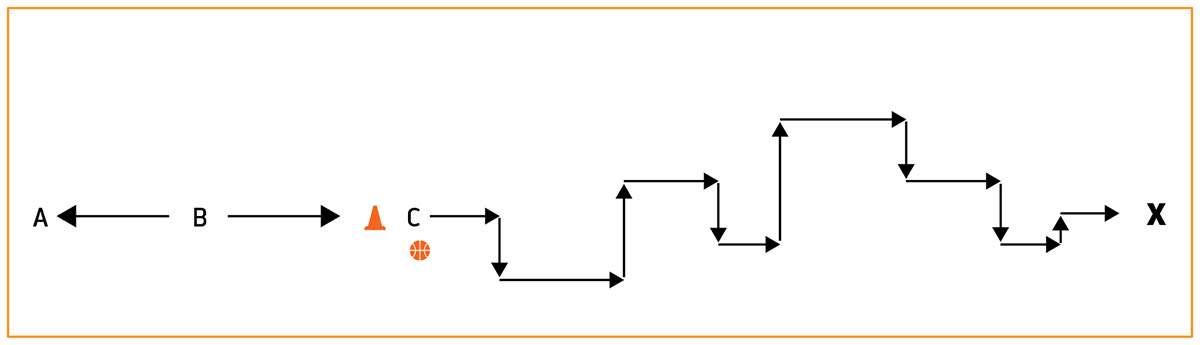 - Place a cone or other marker at least three metres from the wall. If using cone, place each team's ball on top of the cone.