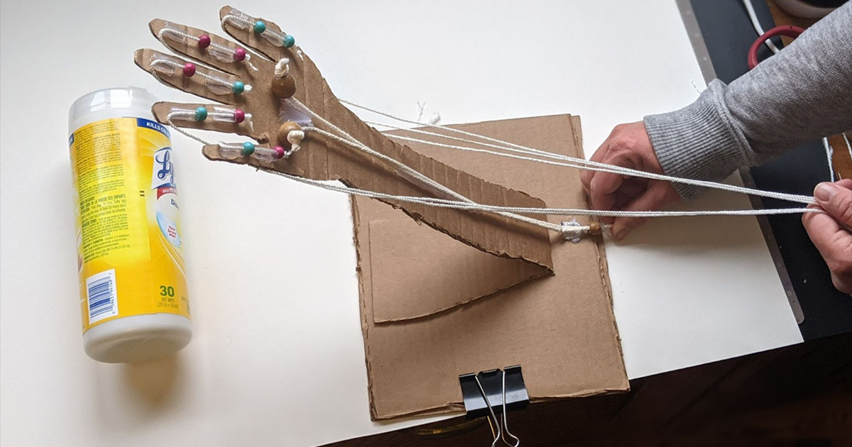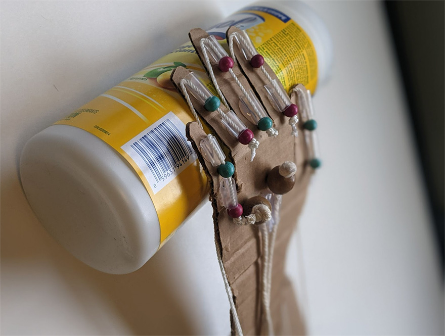 - Quand vous tirez sur les ficelles, les doigts doivent maintenant tous pouvoir se replier comme ceux d'une main humaine.