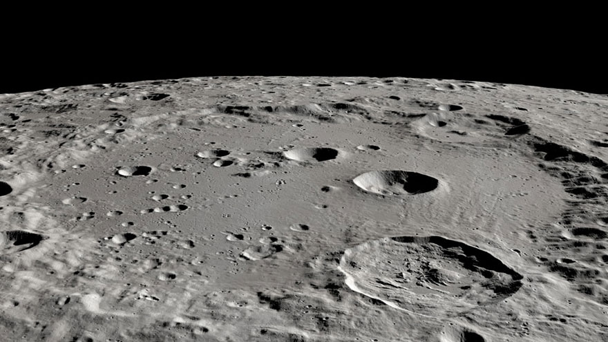 La surface grise de la Lune compte plusieurs cratères de toutes les tailles. (Source : NASA.)