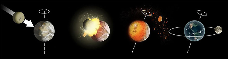La formation de la Lune aurait eu lieu très tôt après la formation de la Terre, il y a environ 4,5 milliards d'années. La théorie la plus plausible est celle d'un impact formidable entre la Terre et une autre petite planète en formation (protoplanète) de la taille de Mars appelée Théia. La collision aurait envoyé beaucoup de débris provenant des deux astres en orbite autour de la Terre. La Lune se serait formée à partir de l'agglomération progressive de ces débris.