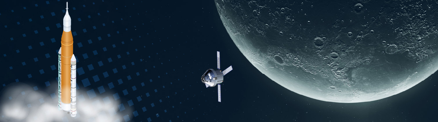 L'exploration de la Lune recommence… nous serons du voyage! Le lanceur SLS (abréviation de Space Launch System) et le vaisseau spatial Orion ont fait leurs preuves lors du vol d'essai sans équipage Artemis I. En , ils permettront à quatre astronautes de faire le tour de la Lune lors de la mission Artemis II.