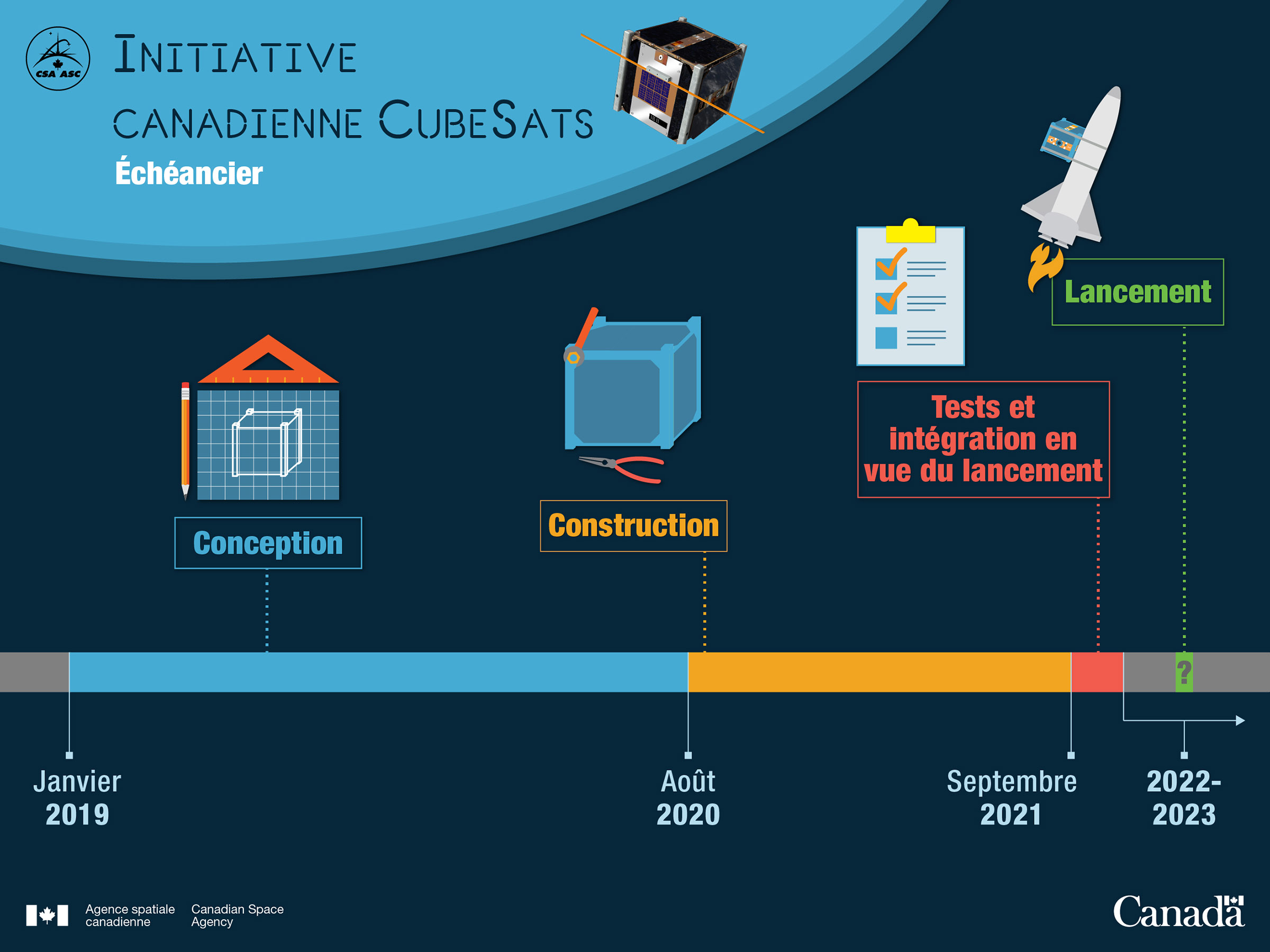 2021-04-21 - L'échéancier de l'Initiative canadienne CubeSats en un coup d'œil. (Source : Agence spatiale canadienne.)