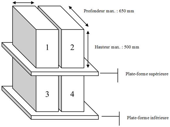 Graphique de la nacelle. Compartiments 1 et 2 au niveau supérieur et compartiments 3 et 4 au niveau inférieurs.