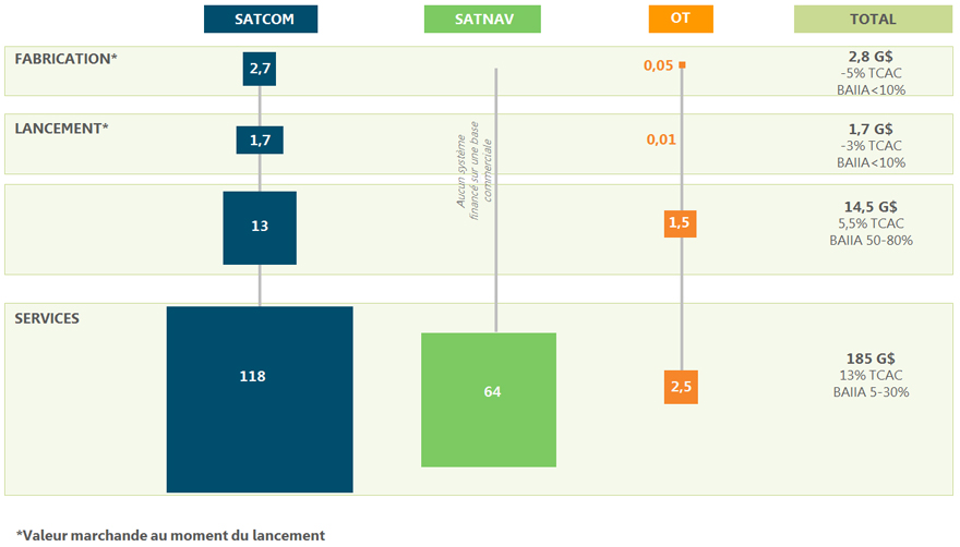 - Figure 8 : Les 3 chaînes de valeur des marchés de satellites commerciaux en 2013