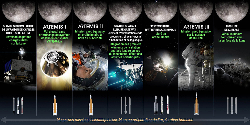 Dans le cadre du prochain programme de la station spatiale lunaire Gateway, l'ASC et le secteur spatial canadien travaillent à fournir à la NASA et à ses partenaires le Canadarm3, le système de robotique spatiale le plus perfectionné jamais mis au point. La première mission Artemis habitée autour de la Lune, prévue pour , sera une mission importante dans l'espace lointain et comptera un astronaute canadien parmi les quatre membres d'équipage.