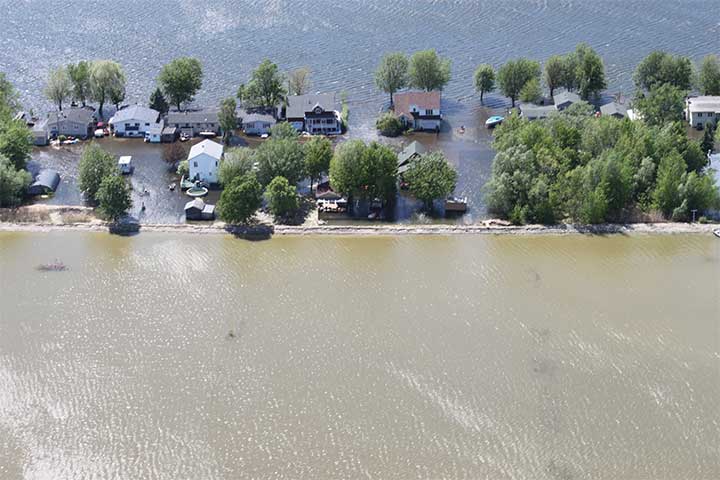 Au printemps 2011, de fortes pluies et la fonte d'une épaisse couche de neige dans les bassins versants du lac Champlain et de la rivière Richelieu ont provoqué l'inondation d'environ 3 000 résidences dans la région de la Montérégie, au Québec.