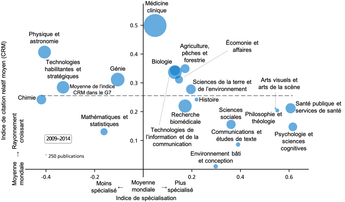 - 9e pour la production totale de publications de recherche, avec 3,8 % de la production mondiale;