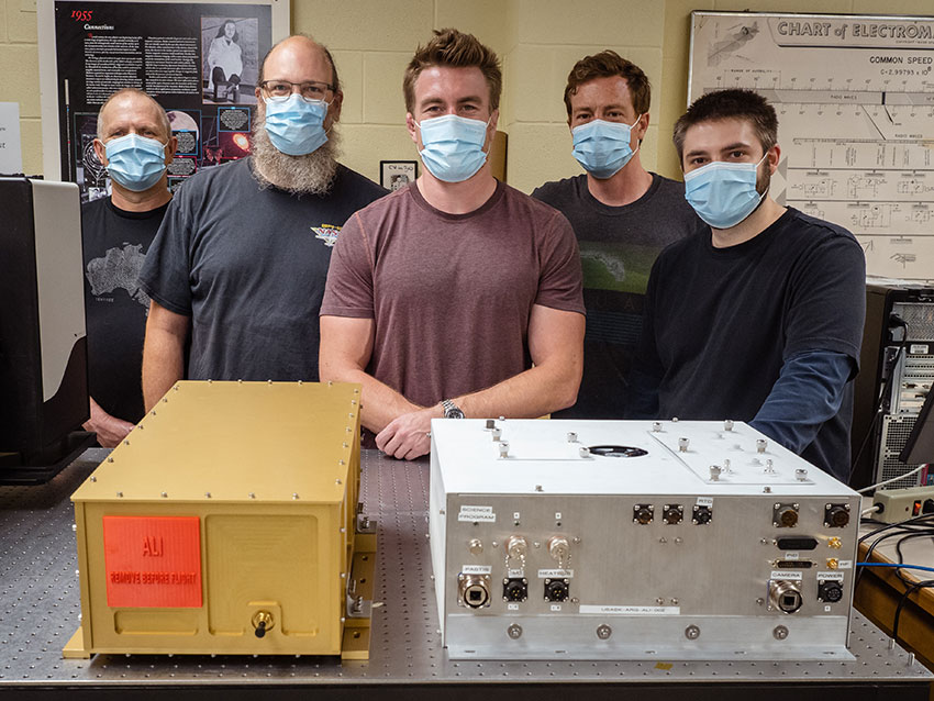 Photo de l'équipe de l'Université de la Saskatchewan qui a travaillé sur le projet Imageur d'aérosols dans le limbe (Aerosol Limb Imager). (Source : Équipe Aerosol Limb Imager, Université de Saskatchewan, .)